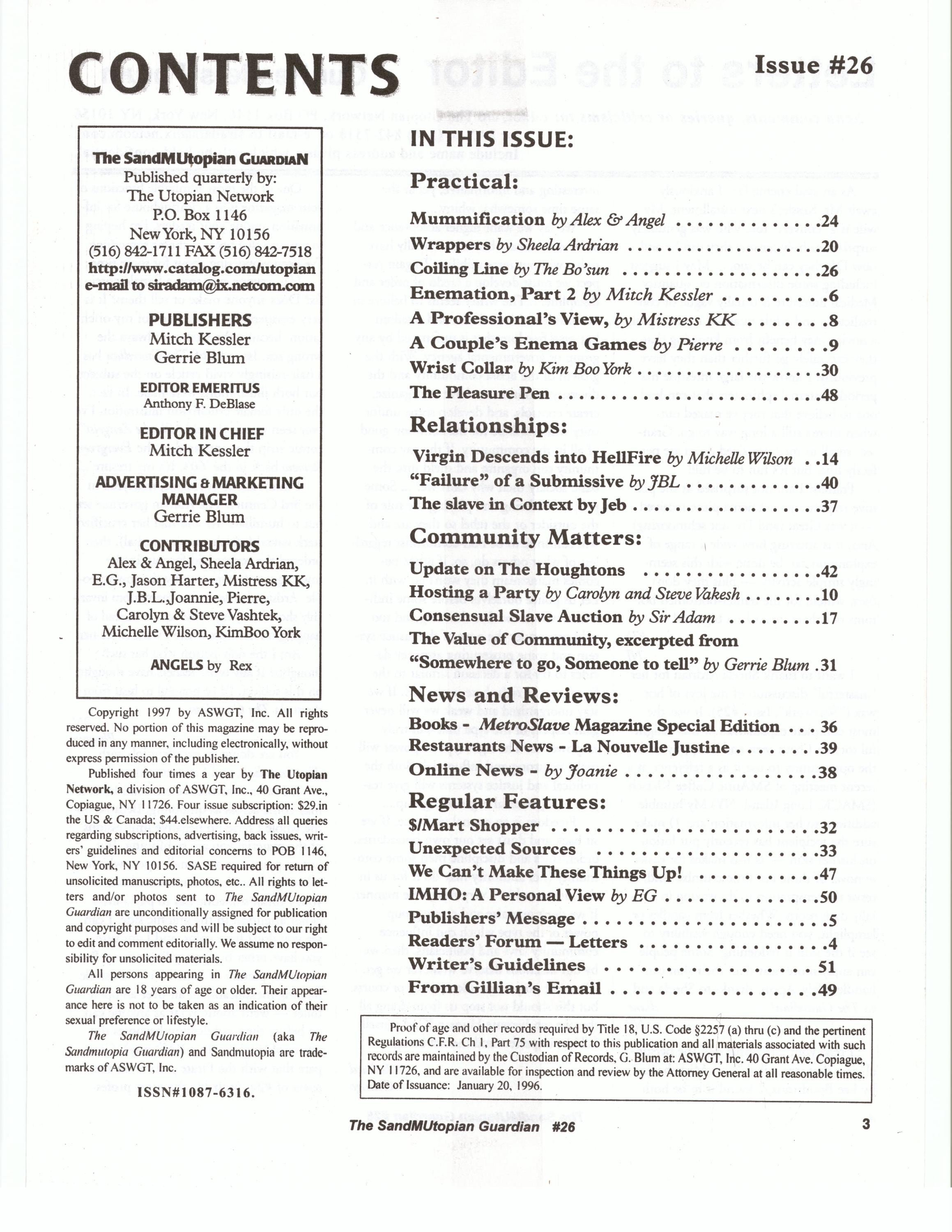 SnadMUtopian Guardian Issue 26 Mummification bondage, Hosting an S/M party, The Value of our Community