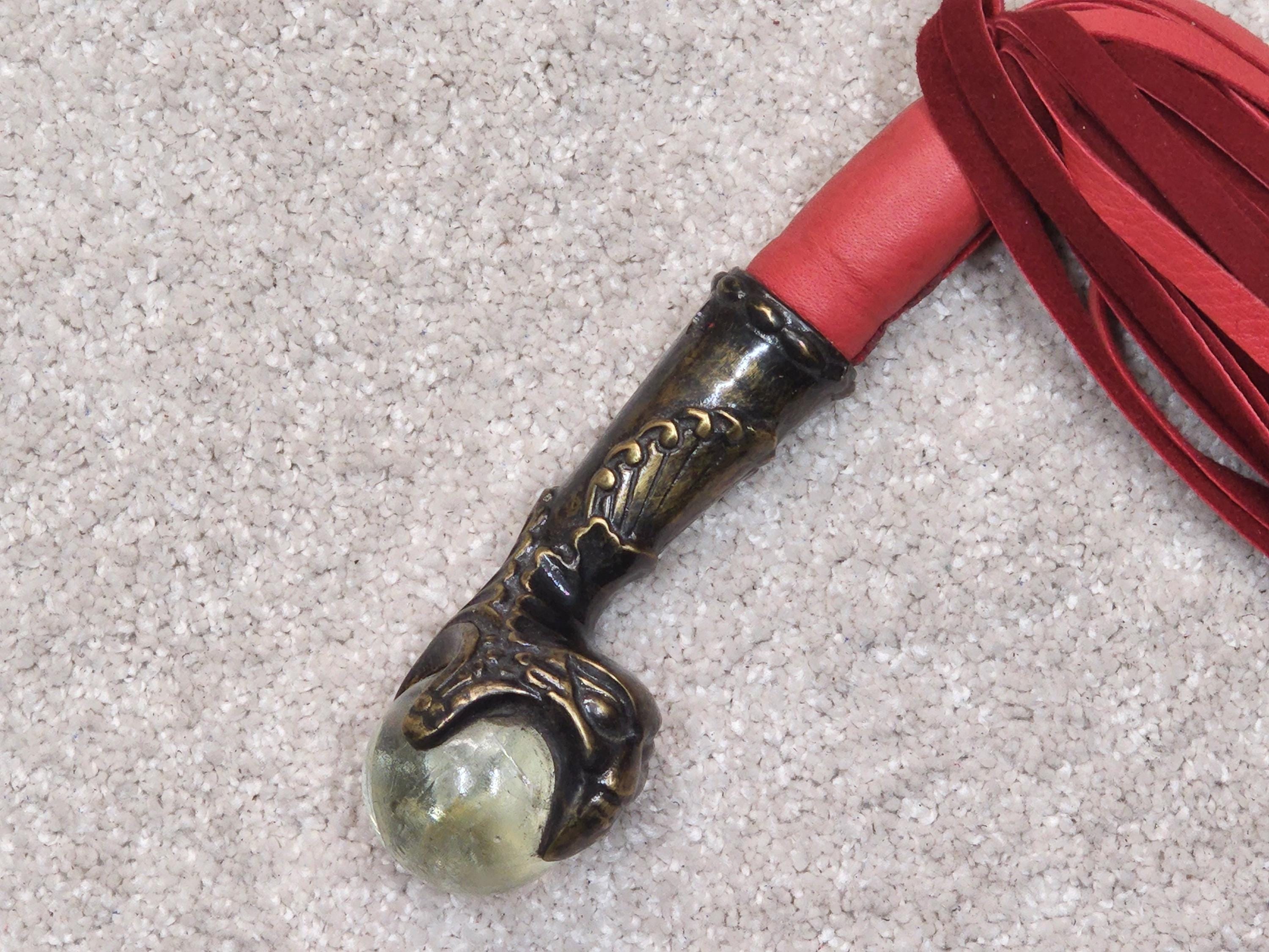 Sensual, Practical, 7/8 diameter tress bundle. The last of its kind ... It's the handle that's hard to find ... and you can have it your way ... Length from 18 to 28 inches with Deerskin, Moose or Bull or Cow hide, choice Colors ... The real GLASS ball is cracked, but structurally sound -- and hasn't been produced in years. This is a FETISH item !
